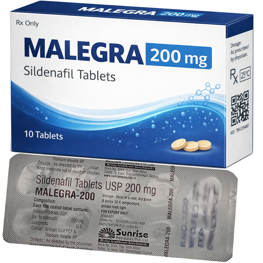 Malegra 200mg Super je najsilnejšia náhrada (genericum) Viagry Pfizer 100mg. Obsahuje tú istú účinnú látku ako Viagra Pfizer 100mg (Sildenafil Citrate)