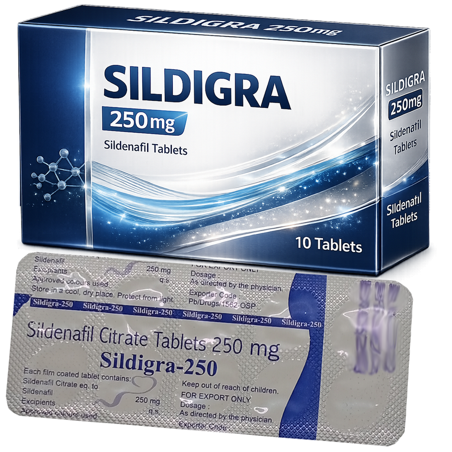 Sildigra 250mg je najsilnejšia náhrada (genericum) Viagry Pfizer 100mg. Obsahuje tú istú účinnú látku ako Viagra (Sildenafil Citrate)