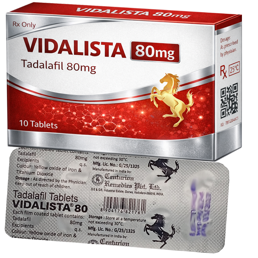 Vidalista 80mg (Tadalafil) je vyrábaný spoločnosťou Centurion Laboratories a je to najobľúbenejší náhrada (generikum) Cialisu (Tadalafil). Vidalista je liek pre mužov ktorí trpia poruchami erekcie alebo ak erektilnou dysfunkciou a po jej užití je možné prakticky každému mužovi dosiahnuť kvalitné erekcie a teda si užiť lepší sexuálny styk.