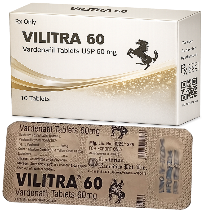 Vilitra 60mg patrí do skupiny liekov, ktoré sa používajú na liečbu ťažkostí s dosiahnutím alebo udržaním erekcie (erektilná dysfunkcia). Najmenej jeden z desiatich mužov má niekedy problémy s dosiahnutím alebo udržaním erekcie. Môžu existovať fyzikálne alebo psychologické príčiny, alebo zmiešanie oboch. Akákoľvek je príčina, kvôli svalovým zmenám a zmenám krvných ciev v penise nezostáva dostatočné množstvo krvi na jeho stvrdnutie a udržanie tvrdosti. Levitra-Vilitra 60mg účinkuje len vtedy, keď ste sexuálne stimulovaný. Znižuje účinok prirodzenej chemickej látky v tele, ktorá spôsobuje zrušenie erekcie. Levitra-Vilitra 60mg umožní dostatočne dlhú erekciu na uspokojivé dokončenie sexuálnej aktivity.